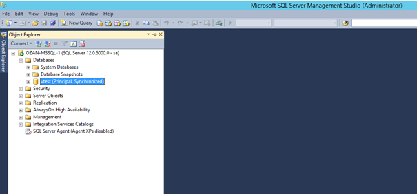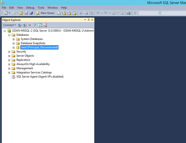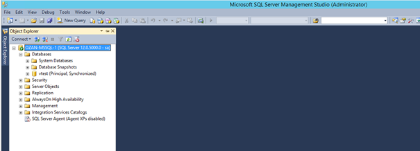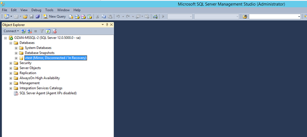 Mirror sunucuma gidiyorum ve MS SQL server management studio açıyorum