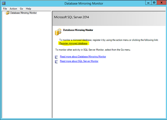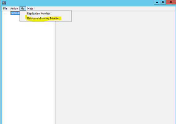 Go menusu altından database mirroring monitor tıklıyoruz.