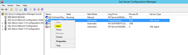 SQL server servisimi durudurmak için önce SQL server configuration çalıştırıyorum.