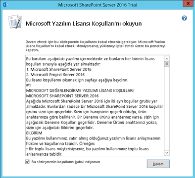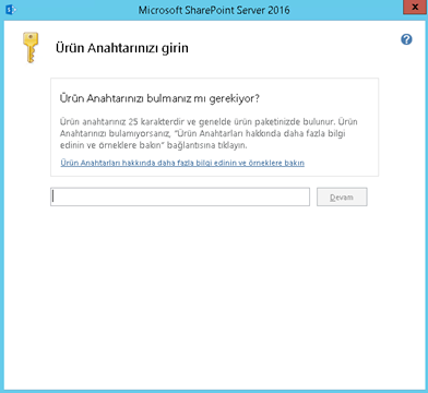 SharePoint kurulum penceresi açılacaktır. Bir sonraki pencerede sizden ürün anahtarınızı girmenizi isteyecektir.