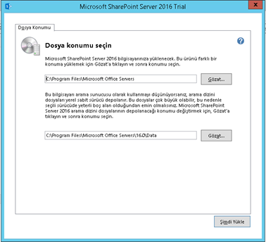 Dosya konumu bölümünde yüklemek istediğimiz dizini belirleyerek şimdi yükle butonuna basıyoruz.