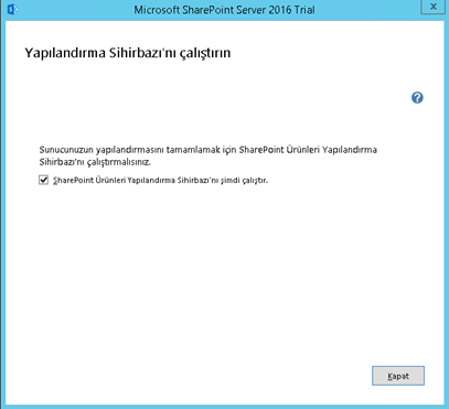 Yapılandırma sihirbazı’nı çalıştırın penceresi karşınıza gelecektir. Kapat butonuna basarak devam ediyoruz.