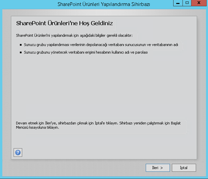 SharePoint ürünlerine hoş geldiniz penceresi karşınıza gelecektir. İleri butonuna basarak devam ediyoruz.