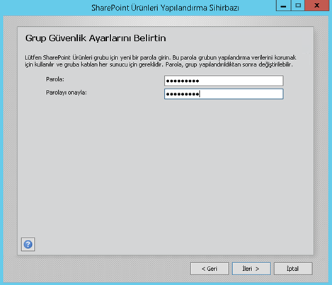 Grup güvenlik ayarlarını belirt penceresinde şifremizi giriyoruz.