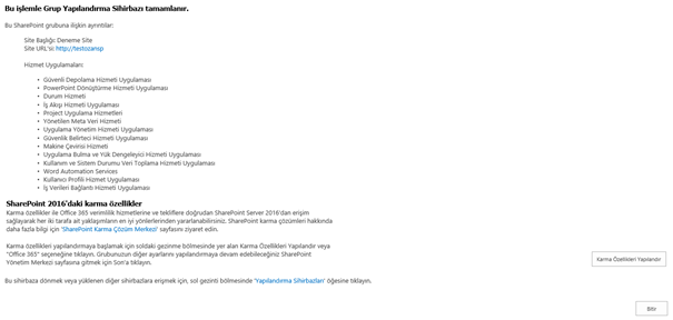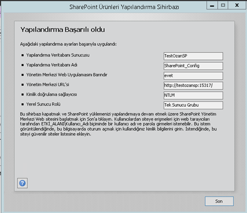 SharePoint yapılandırma işlemimiz tamamlanmıştır.