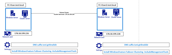 - Minimum 3 adet IP adresi: 1 IP birinci sunucunuz için, 1 IP ikinci sunucunuz için, 1 IP Failover cluster için ihtiyacınız olacaktır.