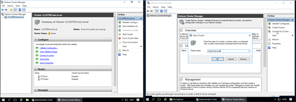 Failover Cluster Manager da sağ bölümde bulunan Connect to cluster butonuna basınız. Cluster FQDN adresini yazınız ok butonuna basınız