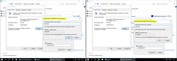 “DNS Suffix and netbios computer name” penceresinde “Primary DNS suffix of this computer” bölümüne failover clusterimiz için bir domain belirliyoruz. Bunun için önerim domain.local şeklinde bir tanımlama yapmanızdır. Talimat kapsamında ben “test.local” olarak tanımlamamı yaparak devam edeceğim.