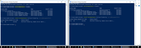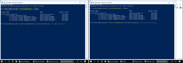 Install-WindowsFeature Failover-Clustering -IncludeManagementTools