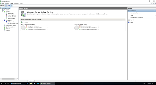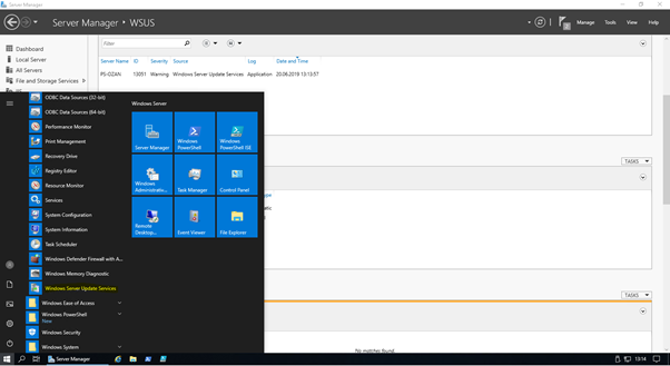 Yükleme işlemi bittikten sonra Start-> administrative tools -> Windows Server Update Services uygulamasını çalıştırınız.