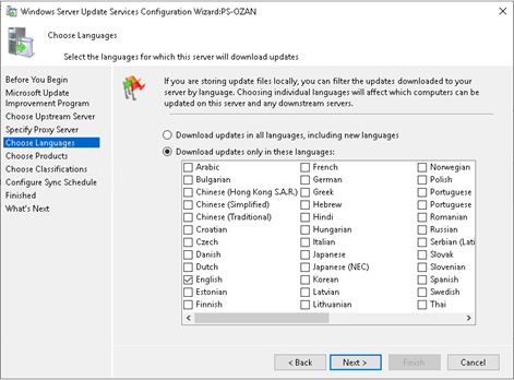 “Choose Languages” adımında güncelleme paketlerinde istediğiniz dilleri seçiniz ve next butonuna basarak devam ediniz.