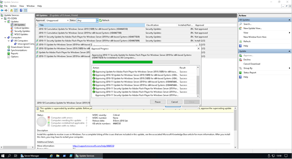 Onaylama işlemi başlayacaktır. Onay verdiğiniz computer group ve inherit olarak uyguladığınız alt gruplara istinaden işlem biraz uzun sürebilir.