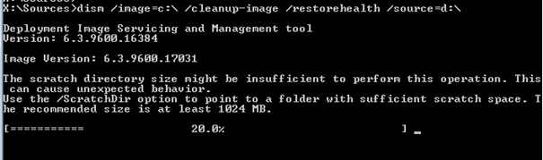 Dism /Image=C:\ /Cleanup-Image /RestoreHealth /Source=D:\