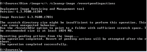 “Dism /Image=C:\ /Cleanup-image /revertpendingactions” komutunu çalıştırıyoruz.
