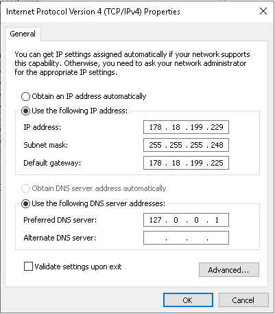 <Netsh interface ipv4 set dns name=”Local Area Connection” source=static addr=8.8.8.8>